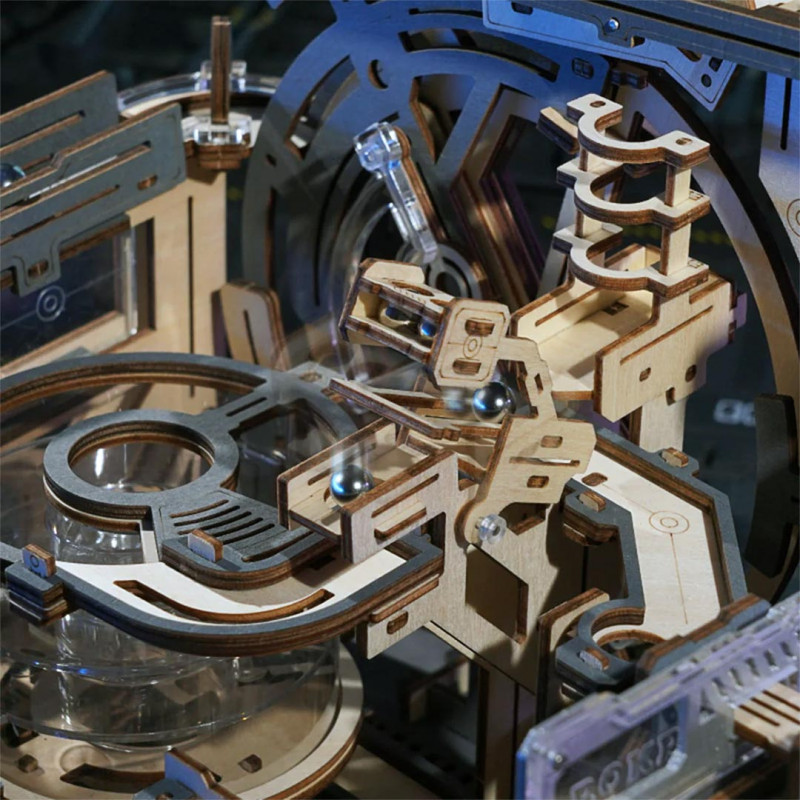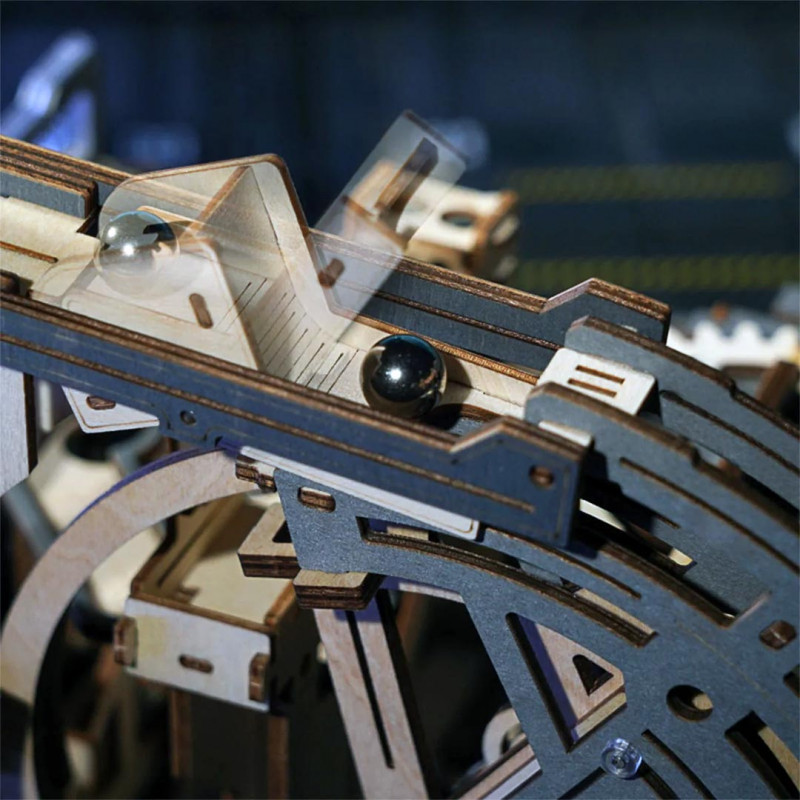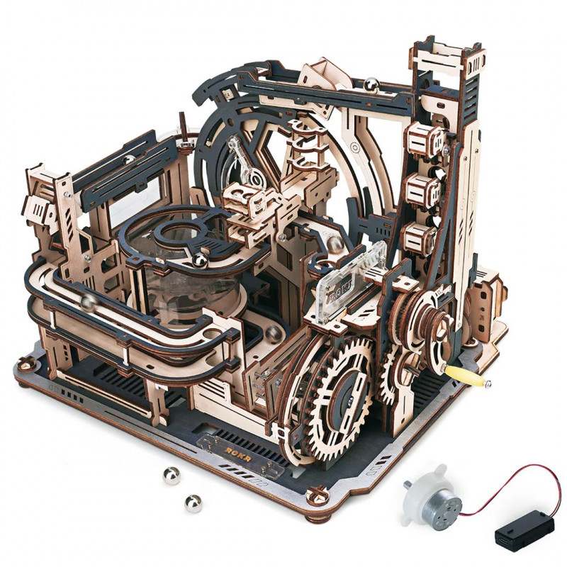 Inspired by the “infernal machines”, this model is as exciting to assemble as it is to operate, battery-free operation by crank or in automatic mode thanks to its electric motor (power supply via USB type C cable not supplied).