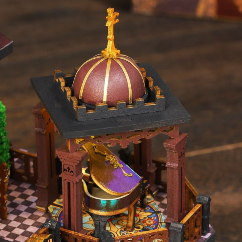 •    Your creation will shine at night thanks to the included lighting! (Requires 2 AAA batteries, not provided) and the included music box.