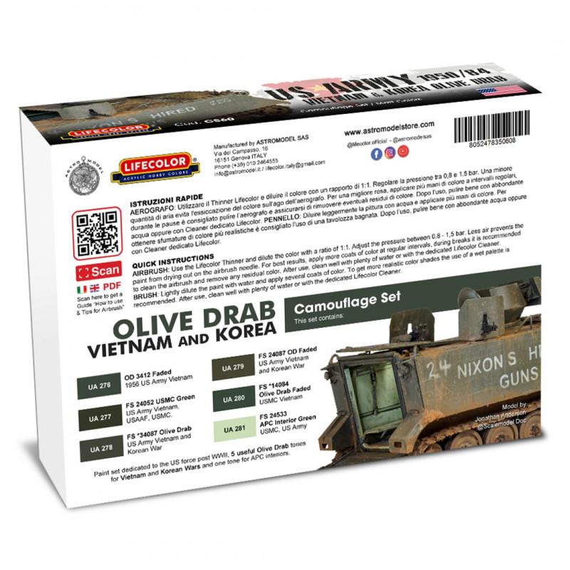 Acrylic Paint Set Olive Green of the U.S. Army from 1950 to 1984
