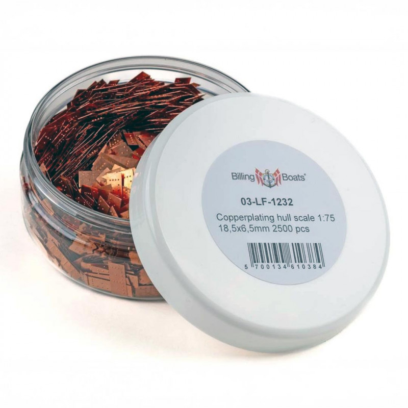 Copper plates for covering the lower part of boat hulls in 1/75 scale.
