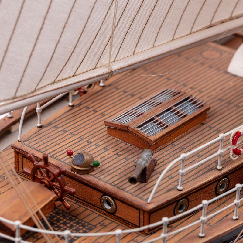 The 2023 version of this model has a new fully illustrated assembly manual in full color, the bilge pump wheels are now made of brass and are exactly the same shape as the real one, obechi strips for the deck are included and a new laser-cut board with reworked scales and other details.