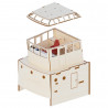 The structural elements are laser-cut, ensuring precise assembly and facilitating the placement of different parts.