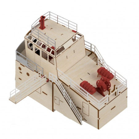 This kit is an excellent project for enthusiasts looking to build a radio-controlled boat, inspired by a modern and realistic harbor tugboat.