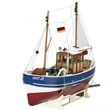 The Antje model boat to build is a faithful reproduction of a typical fishing smack from the North Sea and the Baltic Sea.