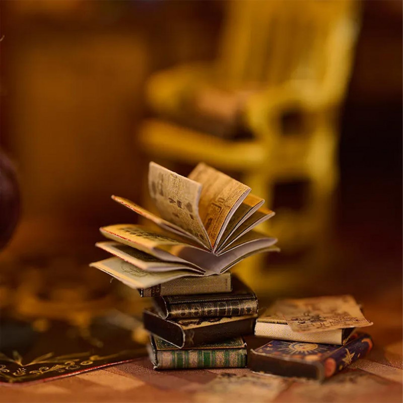 This Miniature house is a miniature diorama designed to be placed on a desk, a shelf, or in a bookshelf.