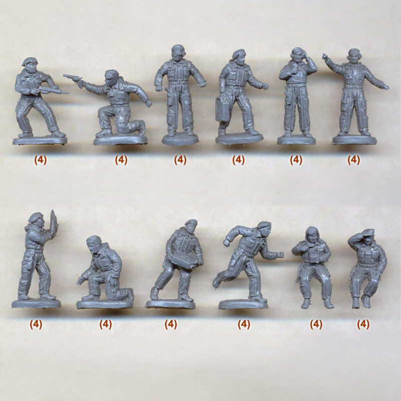 At 1/72 scale, each figurine measures around 25 mm, allowing for the representation of complete groups of soldiers while maintaining a reduced footprint.
