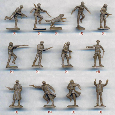 The boxes typically contain several dozen figures with different poses (combat, marching, shooting, commanding), facilitating the creation of realistic scenes.
