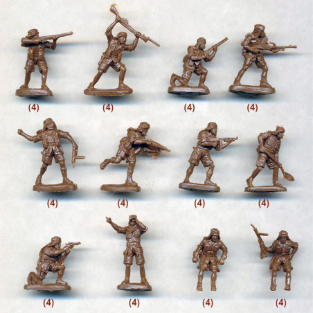 The boxes generally contain several dozen figurines with different poses (combat, marching, shooting, commanding), facilitating the creation of realistic scenes.