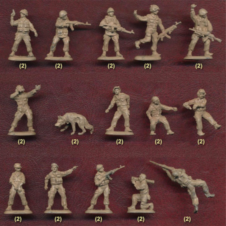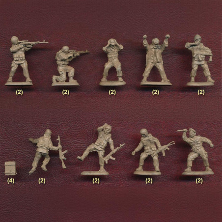 The boxes generally contain several dozen figurines with different poses (combat, marching, shooting, commanding), facilitating the creation of realistic scenes.