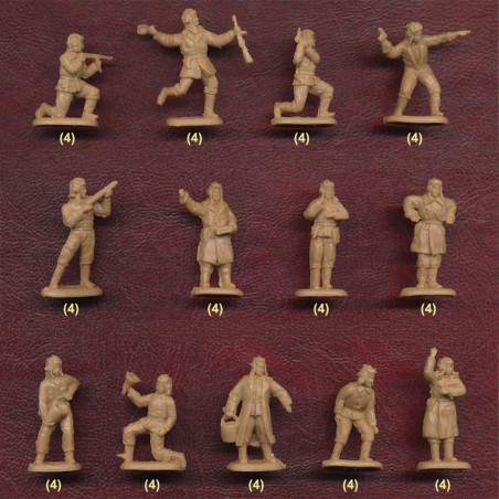 The boxes typically contain several dozen figurines with different poses (combat, marching, shooting, commanding), facilitating the creation of realistic scenes.