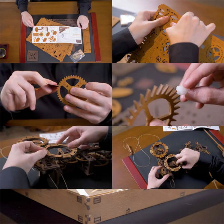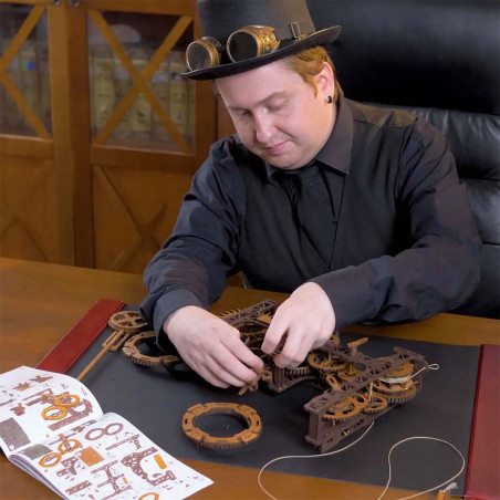 • Have you always dreamed of seeing the mechanism of a clock in action? Now you can, and you can even assemble it yourself. This clock, with its sleek Steampunk design, reveals its entire mechanism.