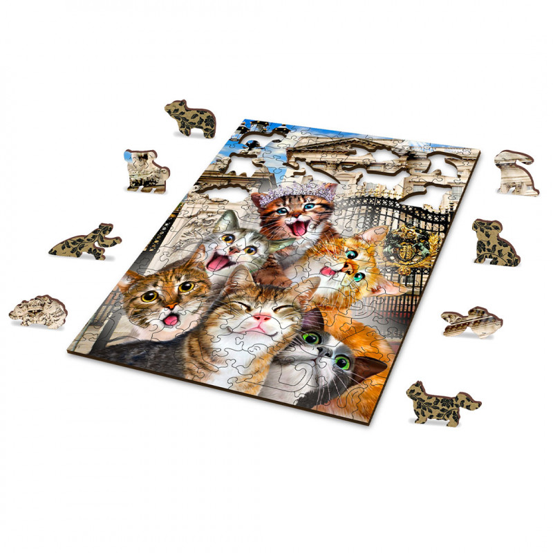 This 200-piece wooden puzzle features adorable kittens snapping a selfie in front of Buckingham Palace.