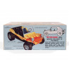 It features a full sheet of decals allowing for different decorating choices. Build it 3 ways: off-road race, street manx or dune buggy with many options including a "street" exhaust line, custom mag wheels, removable hardtop, optional "surrey" roof, modified VW engine with dual carbs and more! Collectible art print of the original box painting included. Beautifully packaged in vintage style packaging!