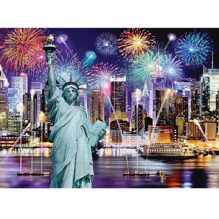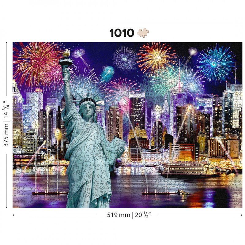 This 1000-piece puzzle showcases New York’s skyline illuminated under a starry sky, with the Statue of Liberty proudly raising her torch among brilliant fireworks. Every detail evokes the city’s spirit and vibrancy.