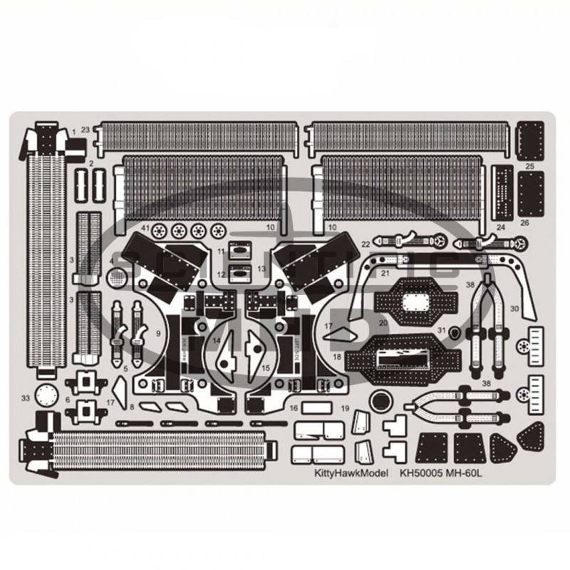 Buildable plastic model of the famous KITTY HAWK MH-60L "BLACK HAWK" helicopter in 1/35 scale