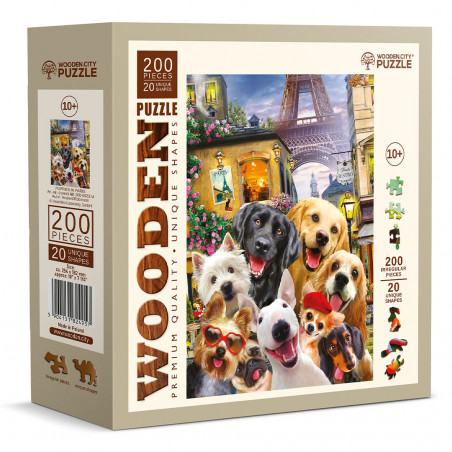 Step into the enchanting world of the Puppies in Paris 200 wooden jigsaw puzzle, a delightful mix of humor, art, and craftsmanship. Perfect for children and adults aged 10 and up, it captures the playfulness of puppies and the elegance of Paris.