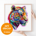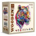 The Wooden Puzzle 150 Dreamy Rainbow Tiger showcases a radiant wildcat adorned in vibrant rainbow hues.