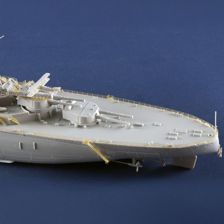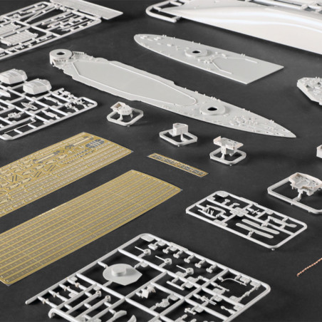 Plastic model kit of a British military ship to be assembled by gluing and painting.