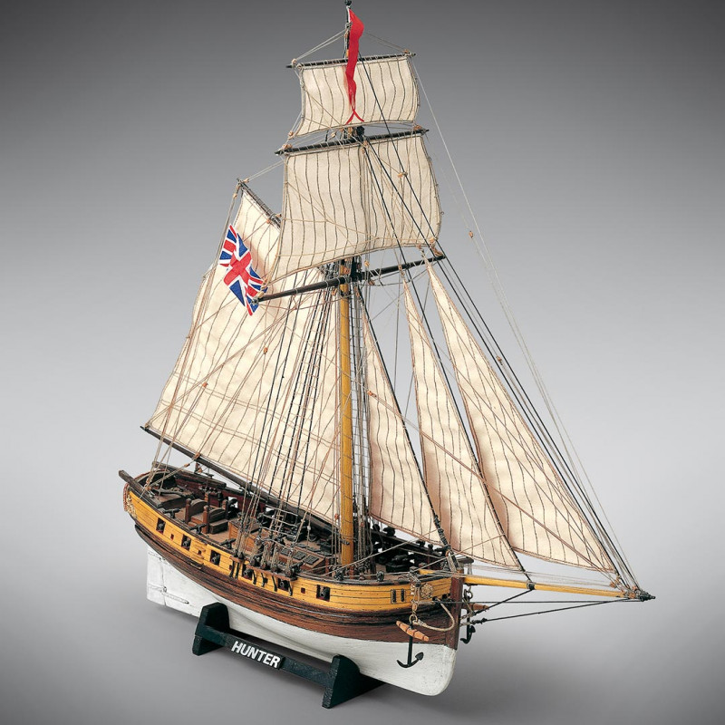 Il s'agit d'un cotre très armé, construit pour la Marine britannique en plusieurs exemplaires, plus ou moins semblables, dans la second moitié du XVIII siècle, pour faire face aux contrebandiers qui furent les premiers à employer ce type de bateau (il paraît que les chantiers anglais les construisent deux par deux : un pour les contrebandiers, un pour les douanes?). Naturellement il fut employé aussi avec des fonctions militaires de garde-côte, surveillance des ports, reconnaissance, avis etc. De ces cotres dérivèrent directement, vers la fin du XIX siècle, les bateaux de sport et de régate. Le modèle reproduit à l'échelle 1 :72 est un exemplaire construit vers 1797. Il est armé de 12 canons et de plusieurs couleuvrines.