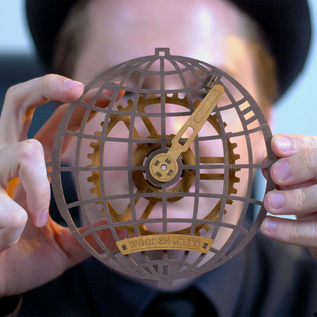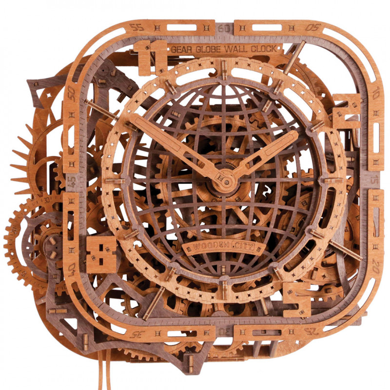 3D Wooden Puzzle Wall Clock Globe with Gears – A Masterpiece of Art and Mechanics
