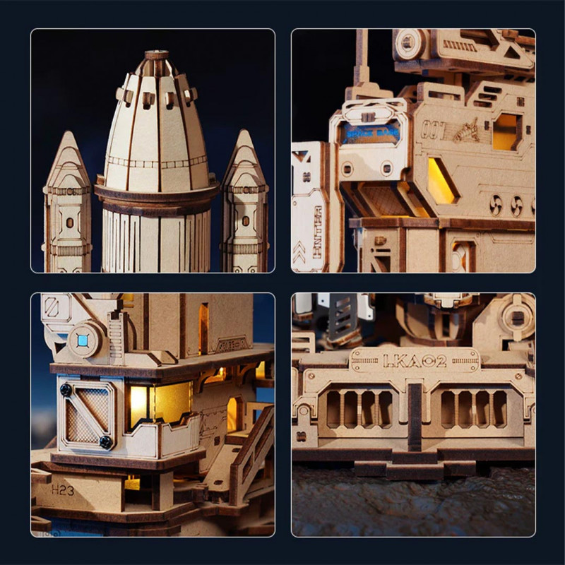 Soar into space with the ROKR space shuttle, a 3D wooden puzzle that replicates the iconic spacecraft perched on a moving mechanical platform. Start the countdown and get ready for liftoff!
