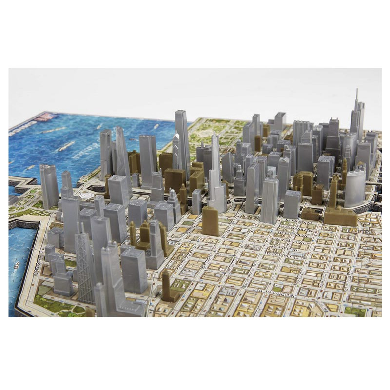 Each building replica fits into pre-cut holes in a traditional 2D jigsaw puzzle composed of 831 pieces that form the city’s street layout and islands.