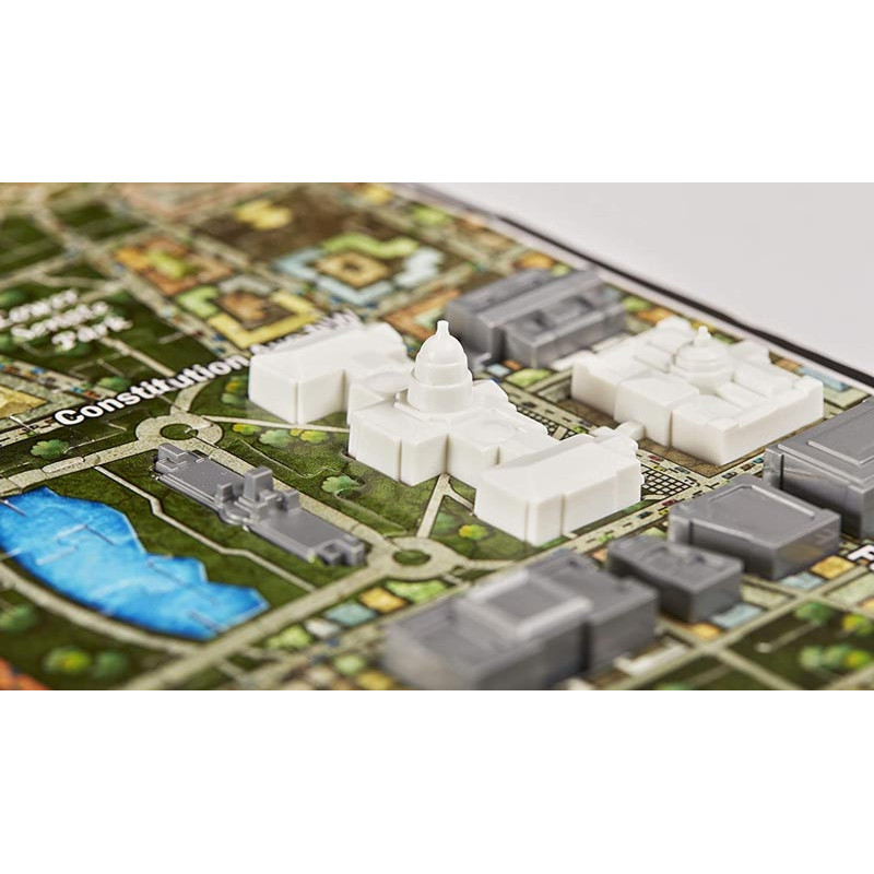 This puzzle recreates Washington D.C.'s historic skyline, not only in three dimensions using scale-model buildings, but also along the fourth dimension time.