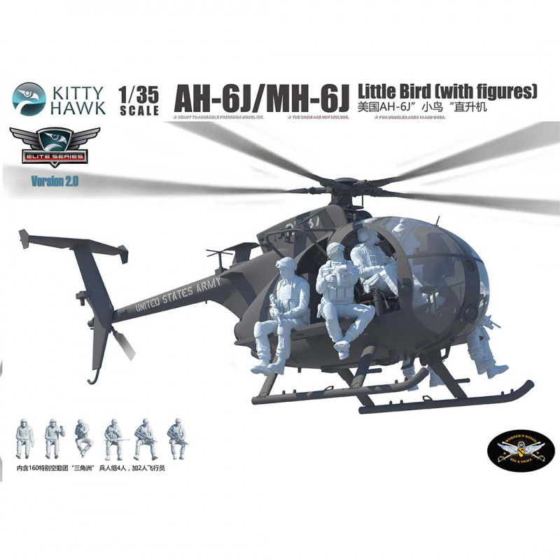 Buildable plastic model of the famous KITTY HAWK MH-6 Little Bird helicopter in 1/35 scale.