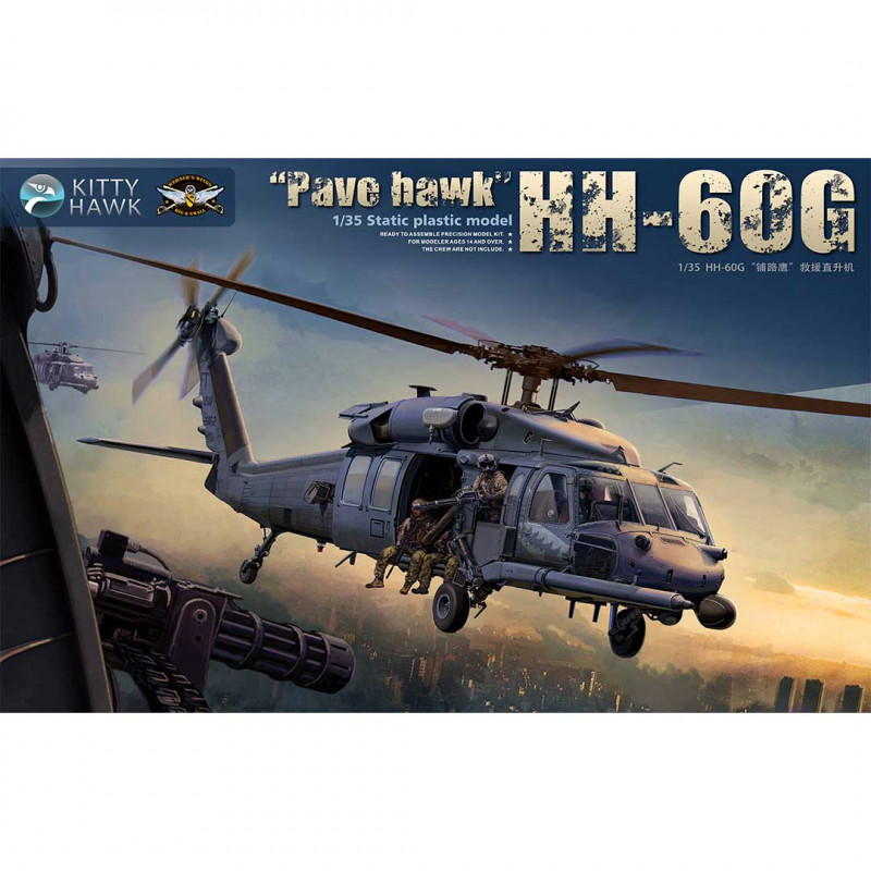 Buildable plastic model of the famous KITTY HAWK HH-60 Pave Hawk helicopter with figures in 1/35 scale.