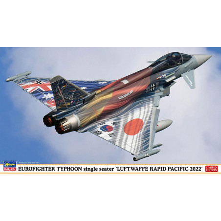 Plus de details Out-of-StockModel of a single-seater Eurofighter Typhoon plastic airplane "LUFTWAFFE RAPID PACIFIC 2022" 1:72