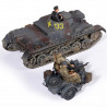 Box containing a tank model, a sidecar model, and 3 figurines.