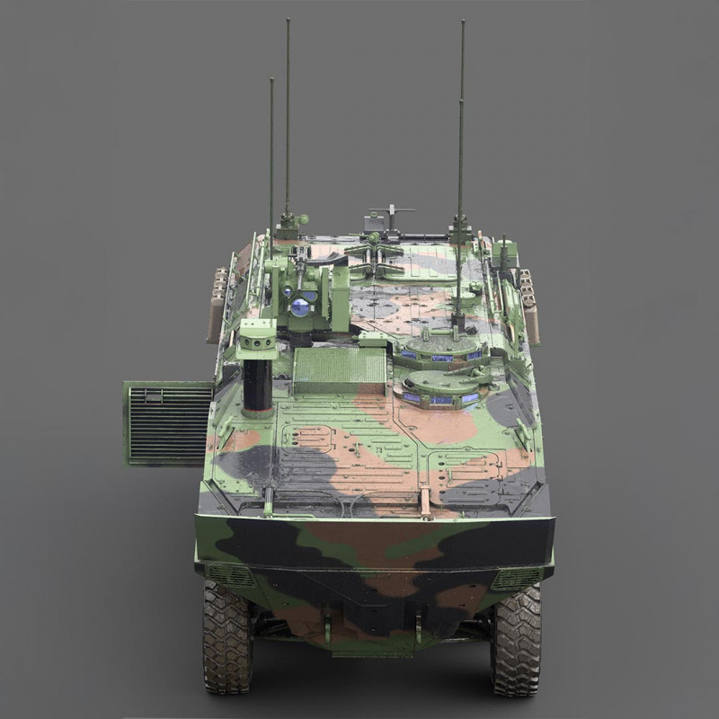 The result is a plastic model with a clear assembly logic, offering precise parts fitting and excellent structural coherence. The assembly time is optimized without compromising the level of detail. The assembly remains accessible while providing finely textured surfaces, multi-level structures, and a faithful reproduction of the technical features of the ACV-P throughout the vehicle.