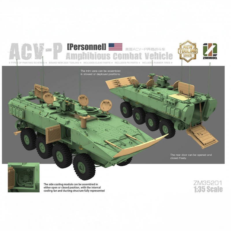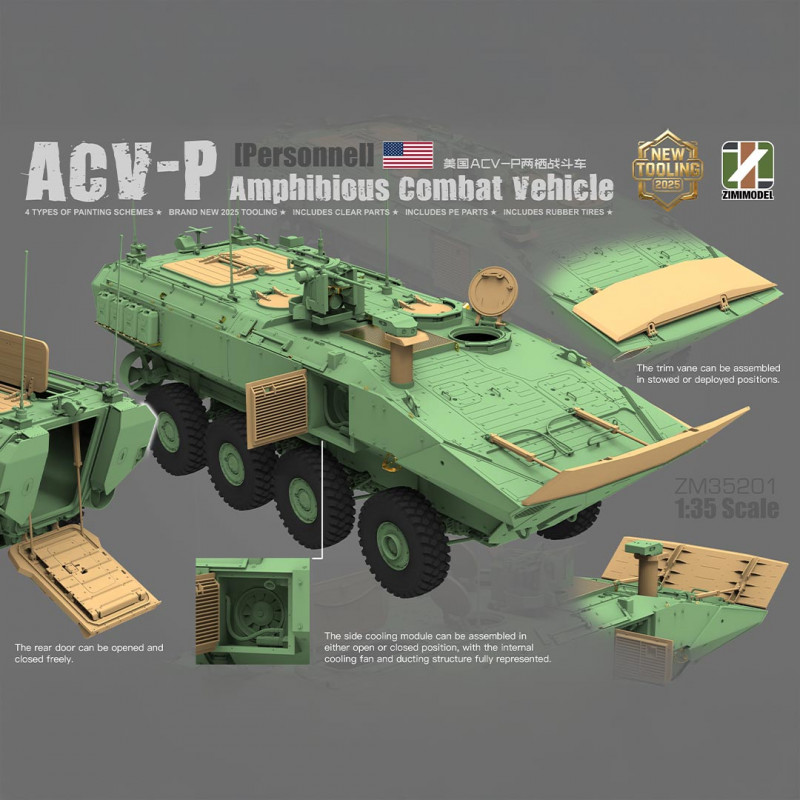 Today, the ACV-P is officially in service within the combat units of the US Marine Corps. It regularly participates in operational deployments and realistic training exercises, making it one of the most representative modern amphibious armored vehicles currently in service. This 1/35 scale military model kit is directly inspired by these operational versions.