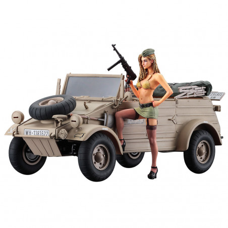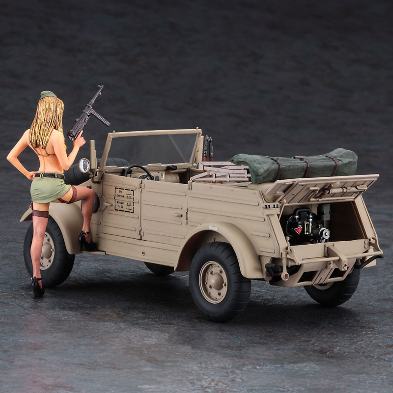 Assemble the military cousin of the famous Volkswagen beetle accompanied by an exclusive resin figurine.