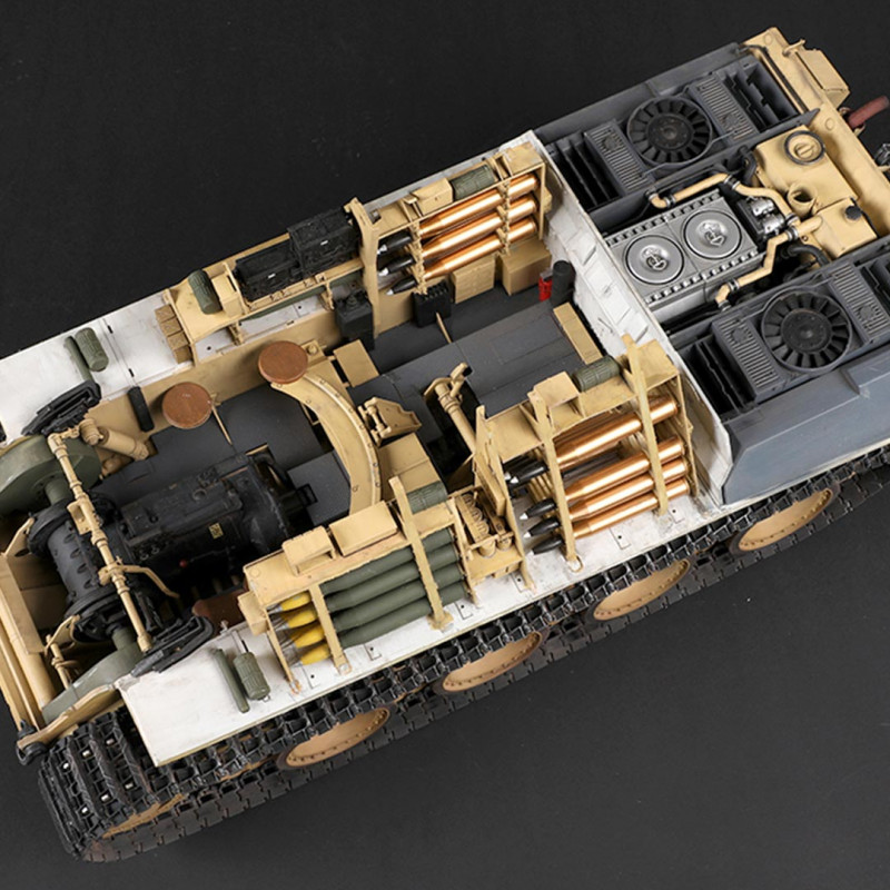 The interior of this tank is fully detailed and allows for leaving internal parts visible thanks to the included transparent pieces.