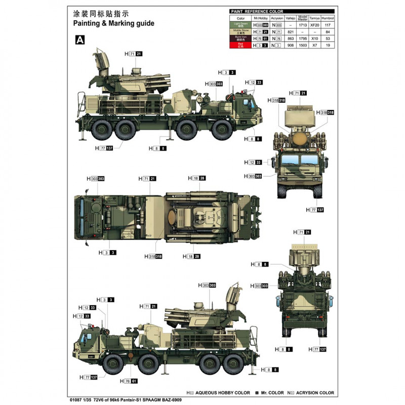 Plus de detailsModel Plastic model of Russian 72V6 of 96k6 Pantsir-S1 SPAAGM BAZ-6909 1:35