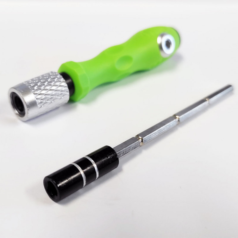 Set includes ergonomic handle, extension and 30 different bits in plastic case.
