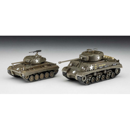 Plastic model kits of M4A3E8 Sherman and M24 Chaffee tanks 1:72