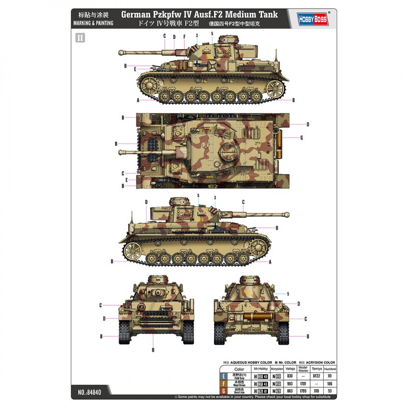 Plastic Model Tank Pzkpfw IV Ausf.F2 Medium Tank 1:48