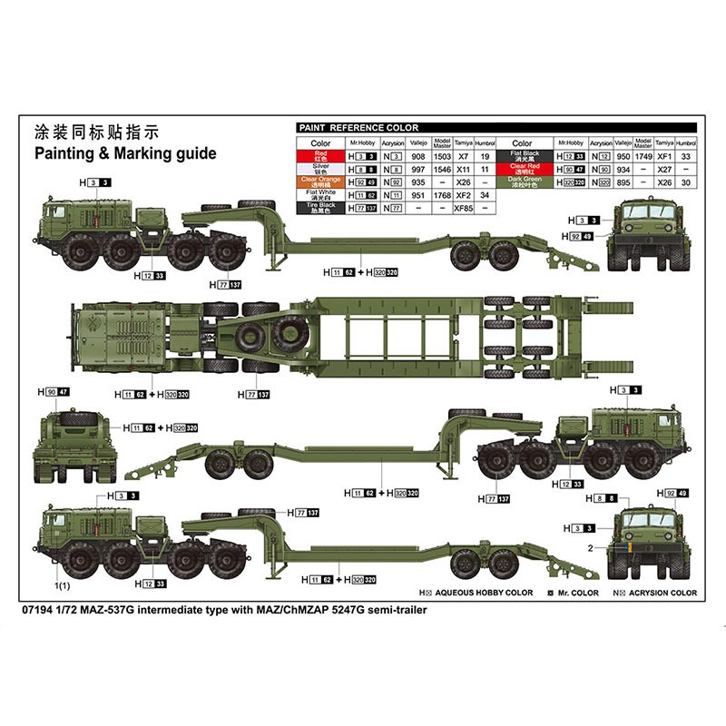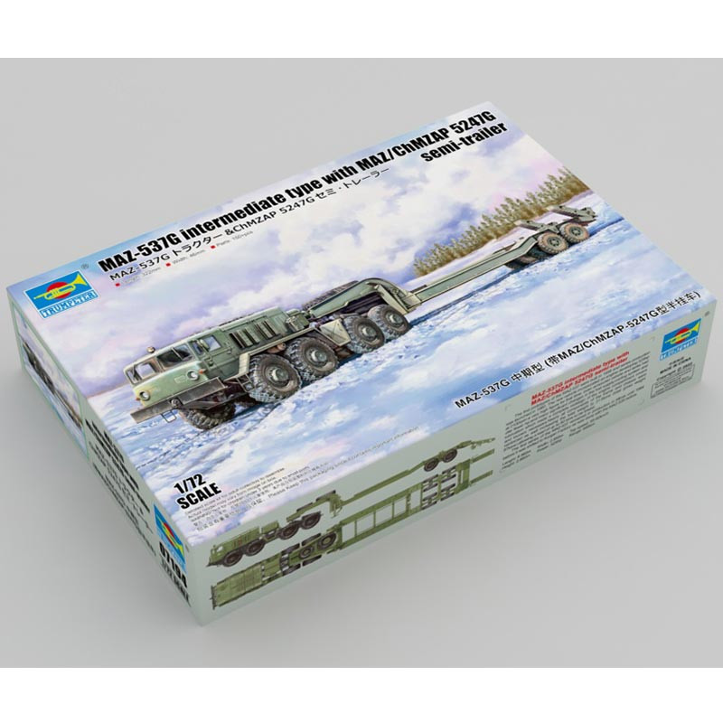 Plastic Model Truck MAZ-537G intermediate type with trailer MAZ/ChMZAP 5247G 1:72