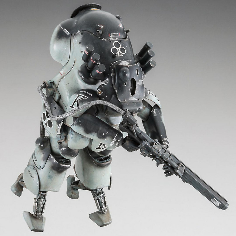 The Ghost Knight is a more powerful version of the MK44H White Knight, an armored suit for the Moon, equipped with an extra protective plate at head level and a long weapon, the feet are also modified for better stability on the ground.
