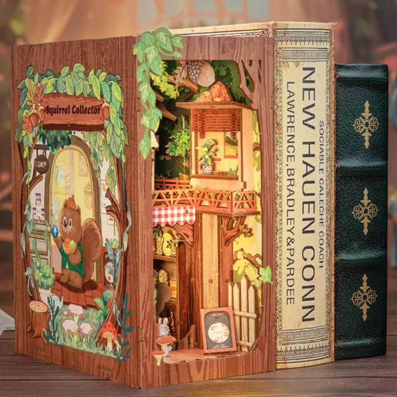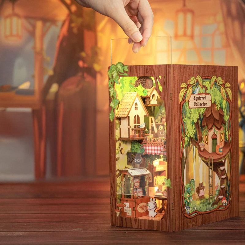Squirrel Collector (The Squirrel Collector), Book Nook mainly in wood to assemble yourself (Do It Yourself).