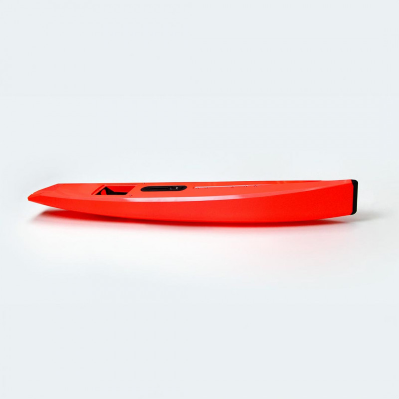 Fluorescent orange metal hull for DragonFlite 95V2, supplied with rubber bow protector, servo support, keel and mast support, deck rings.