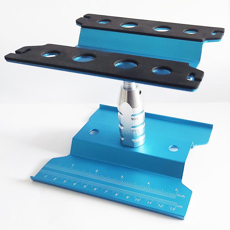 Holes at the top to hold your shock absorbers vertically for easy oil changes.