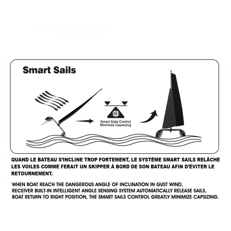 When the boat tilts too much, the SMART SAILS system releases the sails as a skipper on board would to prevent capsizing.