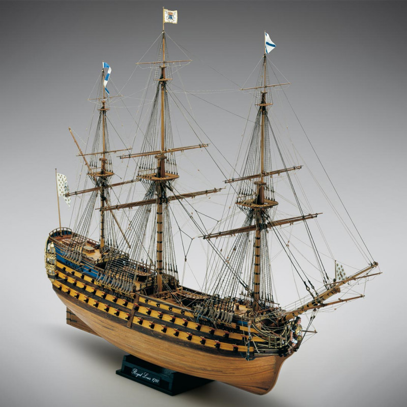 French 1st-rate ship of 1780, the Royal Louis was one of the most powerful first-rate ships in the French Royal Navy at that time. Our model represents the Royal Louis according to the plans of 1779 when it served as the flagship of the White-Blue Squadron.