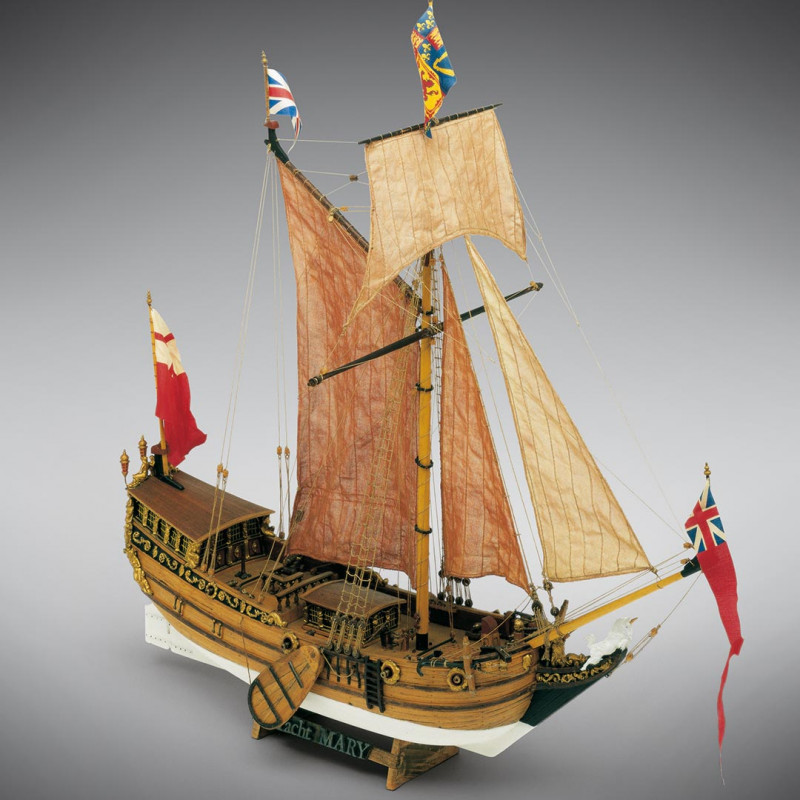 Le premier yacht de la famille royale hollandaise Le Yacht Mary fut construit dans les Pays Bas et fut donn� comme caveau au Prince Charles Stuart par la ville d�Amsterdam � l�occasion de sa proclamation comme roi d�Angleterre. Il est consid�r� comme le prototype des bateaux de plaisance. La reconstruction du mod�le a �t� facilit�e par un peinture de Van der Vendel et surtout par les pi�ces arch�ologiques mises au jour dans les ann�es pass�es sur le lieu o� le navire fit naufrage. Le mod�le est donc tout � fait digne de foi et est identique dans le proc�d� de construction � nos autres mod�les de dimensions sup�rieures. Il est tr�s riche en d�corations qui sont propos�es en fusions tir�es de pi�ces exclusives d�un sculpteur renomm�.