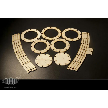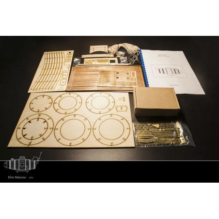 Offered as a wooden kit to build, this Nikonov ZHL submarine provides a detailed construction with laser-cut pieces, metal elements, and display stand included.