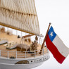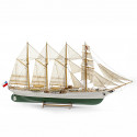 A true emblem of the Chilean navy, the Esmeralda is a four-masted ship of rare elegance, renowned for its slender silhouette and prestigious history. Measuring 113 cm in length once assembled, this model impresses with its finesse and fidelity to the original plans of the full-size ship. Every detail, from the rigging to the masts, reflects meticulous workmanship and expertise recognized in the world of naval modeling.