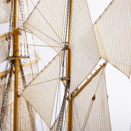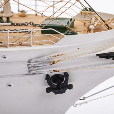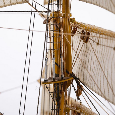 The all-wood construction offers an authentic and immersive experience, allowing each modeler to bring this navigation monument back to life. The deck fittings are included, along with a detailed and illustrated assembly manual that guides step by step through the assembly of the various parts of the sailboat.